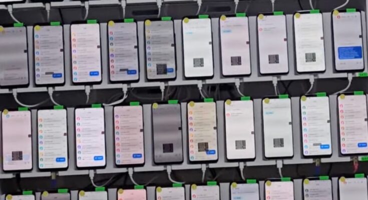 During their investigation, Mnemonic found photos from inside the operation posted in a Telegram channel that Darcula administered, showing a line-up of credit card payment terminals and videos showing racks with dozens of phones used for automating the sending of messages to victims.